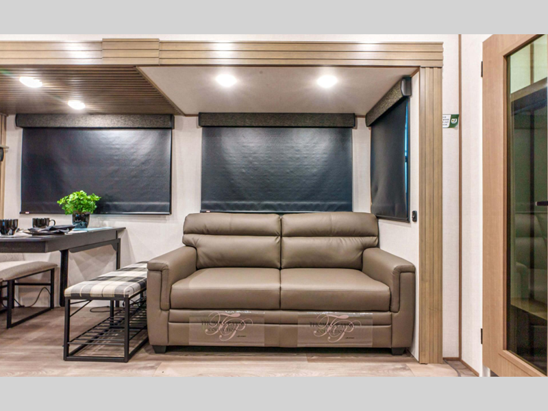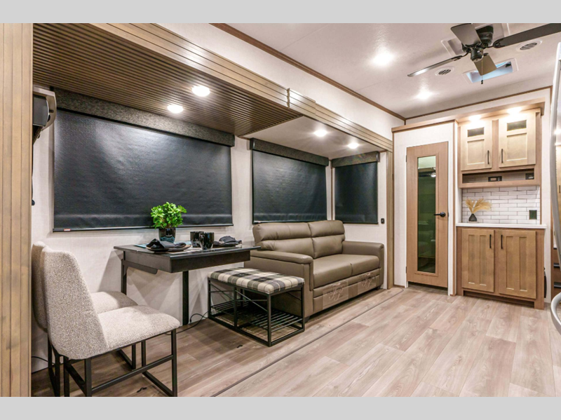 Sleeps 4 Slides 3 Length 37 ft 11 in Ext Width 8 ft Ext Height 12 ft 11 in Interior Color Mink, Pebble Hitch Weight 2160 lbs GVWR 14500 lbs Dry Weight 12420 lbs Cargo Capacity 2080 lbs Fresh Water Capacity 76 gals Grey Water Capacity 50 gals Black Water Capacity 50 gals Tire Size 16" Furnace BTU 35000 btu Available Beds King Refrigerator Type Residential Refrigerator Size 18 cu ft Convection Cooking Yes Cooktop Burners 4 Number of Awnings 1 Axle Weight 10260 lbs LP Tank Capacity 30 lbs Water Heater Type On Demand Tankless AC BTU 15000 btu TV Info LR 43" Smart LED TV Awning Info 16' Power w/LED Light Strip Axle Count 2 Washer/Dryer Available Yes Number of LP Tanks 2 Shower Type Shower w/Seat Electrical Service 50 amp Similar Floorplans