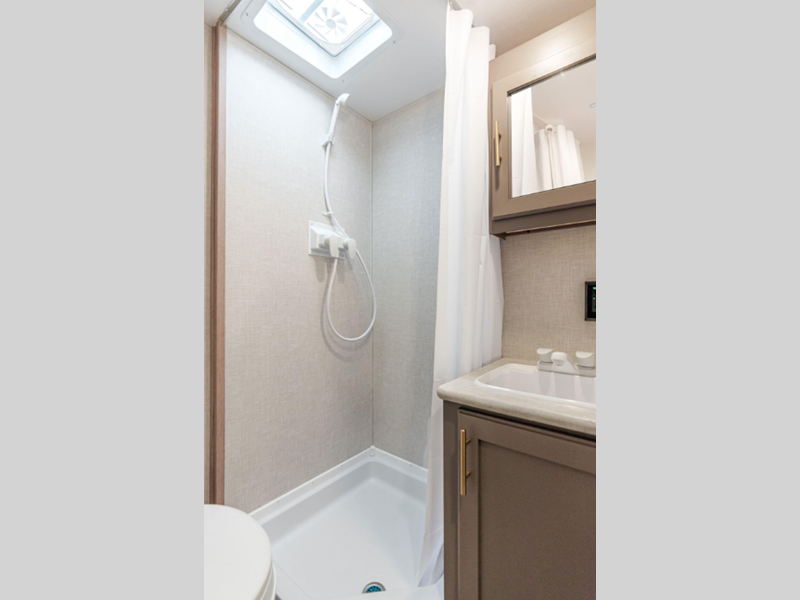 Each model includes residential grade linoleum, tons of storage space, and rail-style cabinet doors with modern handles. You will appreciate the digital media stereo with Bluetooth, USB ports for your phone or tablet, and an omnidirectional HDTV antenna with Wi-Fi prep if you need to get some work done while you're away from home. The Sportsmen Classic has R-7 insulation in the sidewalls, tinted windows, and self-adjusting electric brakes.