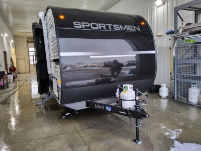 With any Sportsmen Classis travel trailer by KZ you will find durable construction materials, like the 3/8" fully-walkable roof and the one-piece seamless Tufflex material. Each model includes scissor-style stabilizer jacks, a Key-Alike program for baggage and entry doors, and a Leash Latch with a bonus beverage opener. You will find interior and exterior speakers plus backup camera prep and solar prep. The Sportsmen Classic is designed to make you feel at home with rail-style cabinet doors, residential grade linoleum, and plenty of storage space for all your belongings.