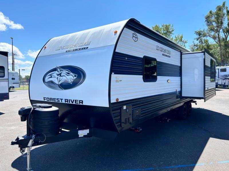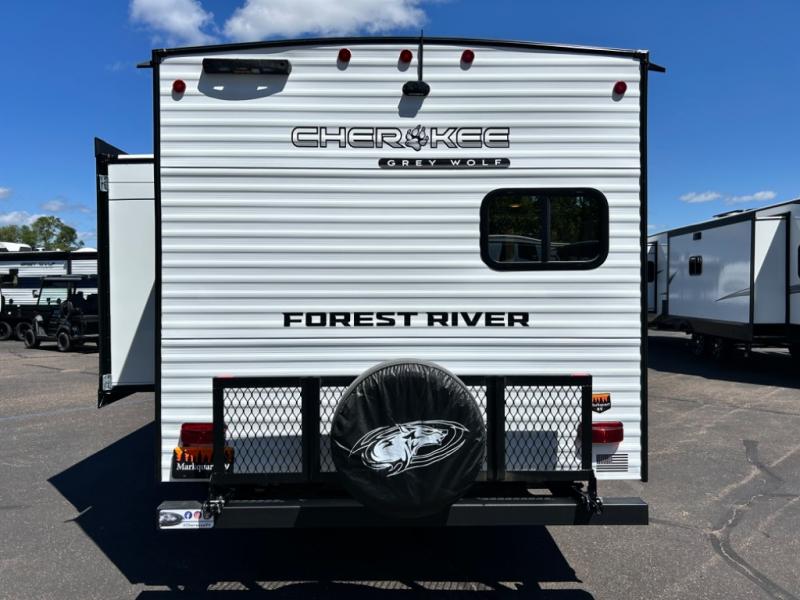 Whether it's a journey that will take you to new locations or a tried-and-true getaway to that favorite and memorable destination, the Forest River Cherokee Grey Wolf travel trailers and toy haulers are going to make the trip worth it every single time! You can travel in confidence with the premium wheel package, seamless roofing membrane with heat reflectivity, Power Gear frame technology with space-saver rail design, and Cherokee back-up camera system. The Cherokee Grey Wolf's interior is highly attractive with its stainless steel kitchen suite package and premium bedding ensemble and comforter. You will also find a black waste tank flush-out kit, an outside shower with hot and cold water, an armored underbelly tank enclosure, and an RV grill quick connect.