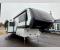 This Model Z luxury fifth wheel is bright and modern on the inside, with loads of amenities that will have you dreaming of your next trip! Enter and find a spacious combined living/kitchen space thanks to dual opposing slides. There is ample seating with a sliding desk/dining table, 62" theater seating, and a 72" tri-fold sofa along the rear wall. You can easily relax and enjoy the 50" Smart telescoping TV with a cozy fireplace below. The kitchen offers all that you need to prepare and cook meals just like home with a 16 cu. ft. refrigerator for your perishables, a 30" microwave oven, and three burner range top and oven. You will love the integrated spice rack, and the kitchen island all outfitted with dog bowls and double pull out trash bins with an integrated Stow 'N Go paper towel holder. There is also an 84" pantry with adjustable shelves for all of your canned and dry goods. Head up the steps to a private master suite with king bed slide. You can opt for the queen bed if you like. A sliding dresser top features hidden storage which is perfect for jewelry and other personal belongings. The front wardrobe features mirrored doors and the corner closet has been prepped for a stackable washer and dryer if you choose to add that option. Relax and enjoy a large bath featuring a linen cabinet, a 30" x 42" shower, and vanity with sink, plus medicine cabinet.
