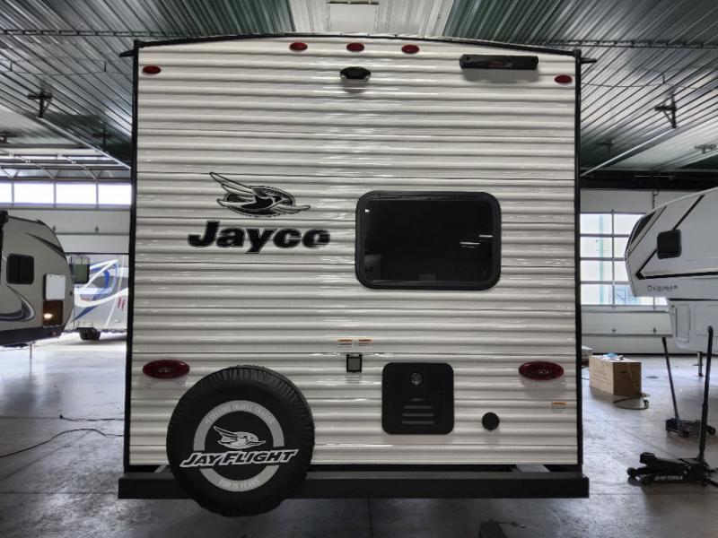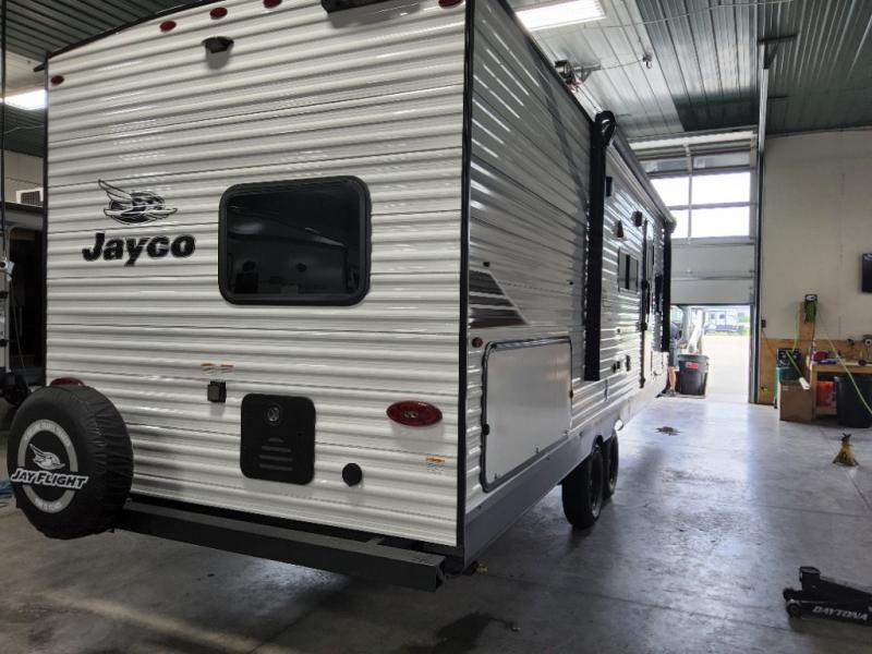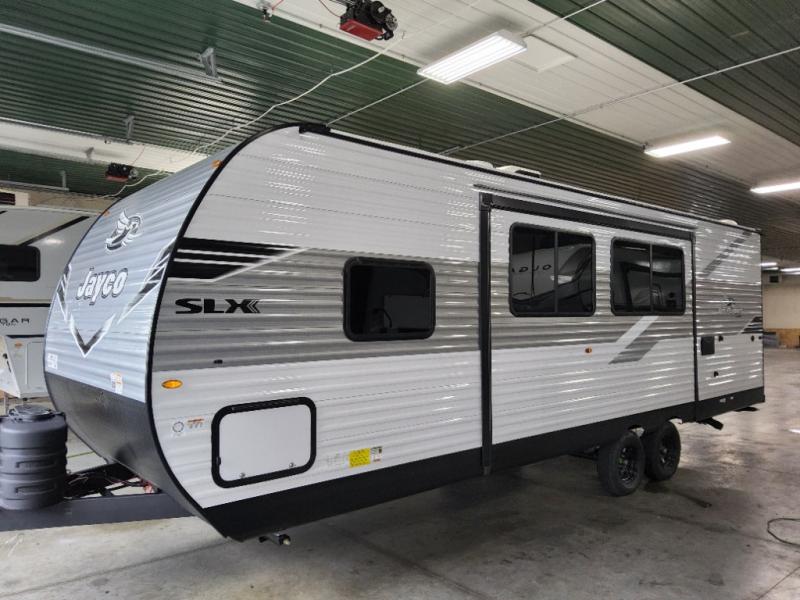 The Jayco Jay Flight SLX travel trailer is quite easy to own because it is lightweight for an easier towing experience. Built on a fully integrated A-frame with galvanized-steel, impact-resistant wheel wells, the Jay Flight SLX has quality at its very foundation. That quality continues on to the electric self-adjusting brakes, easy-lube hubs, Magnum Truss roof system, and LP quick connect. Some of what the mandatory Customer Value Package includes is backup camera prep, Keyed-Alike entry and baggage doors, marine grade exterior speakers, and an on-demand tankless water heater.
