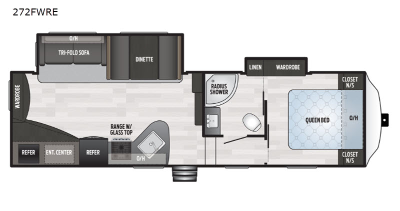 It's time for you to do camping the right way with this Keystone Springdale 272FWRE fifth wheel! It features a front private bedroom that has a queen bed for you to rest up after your adventurous day. Plus, there are closets and nightstands on either side of the bed and a wardrobe for you to keep your clothes tidy. You even have your own entrance into the dual entry bath. Inside the bathroom, there is a radial shower with a skylight above to help add more natural lighting as you get ready for the day. While you're whipping up your best meal in the kitchen with the three burner cooktop with an 18" oven or even the residential microwave, you can still socialize with your family and friends as they relax at either the booth dinette or the tri-fold sofa. Both of these furnishings can transform into extra sleeping spaces when you need them.